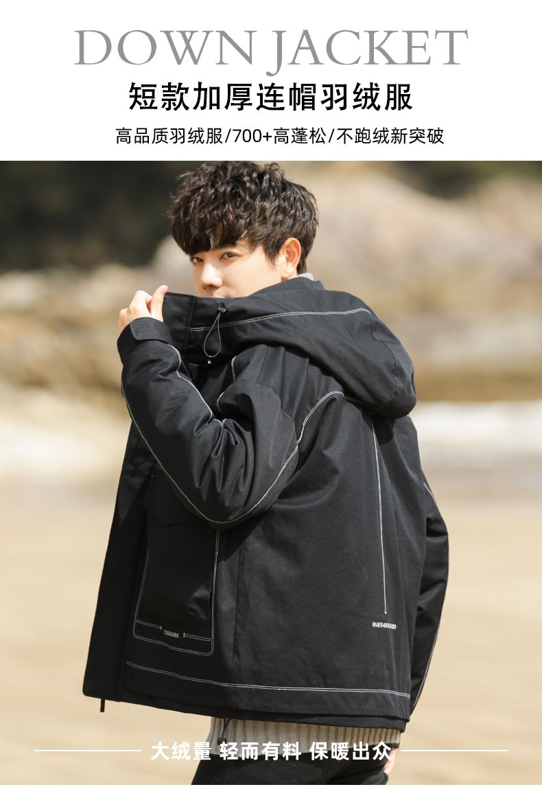 商品名称: 九品枭臣 羽绒服男2020冬季新款潮流连帽白鸭绒加厚上衣保暖工装宽松韩版连帽外套男装 黑色 M