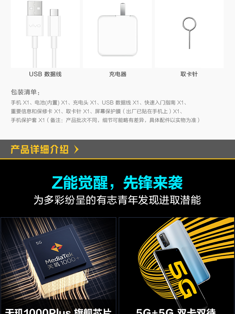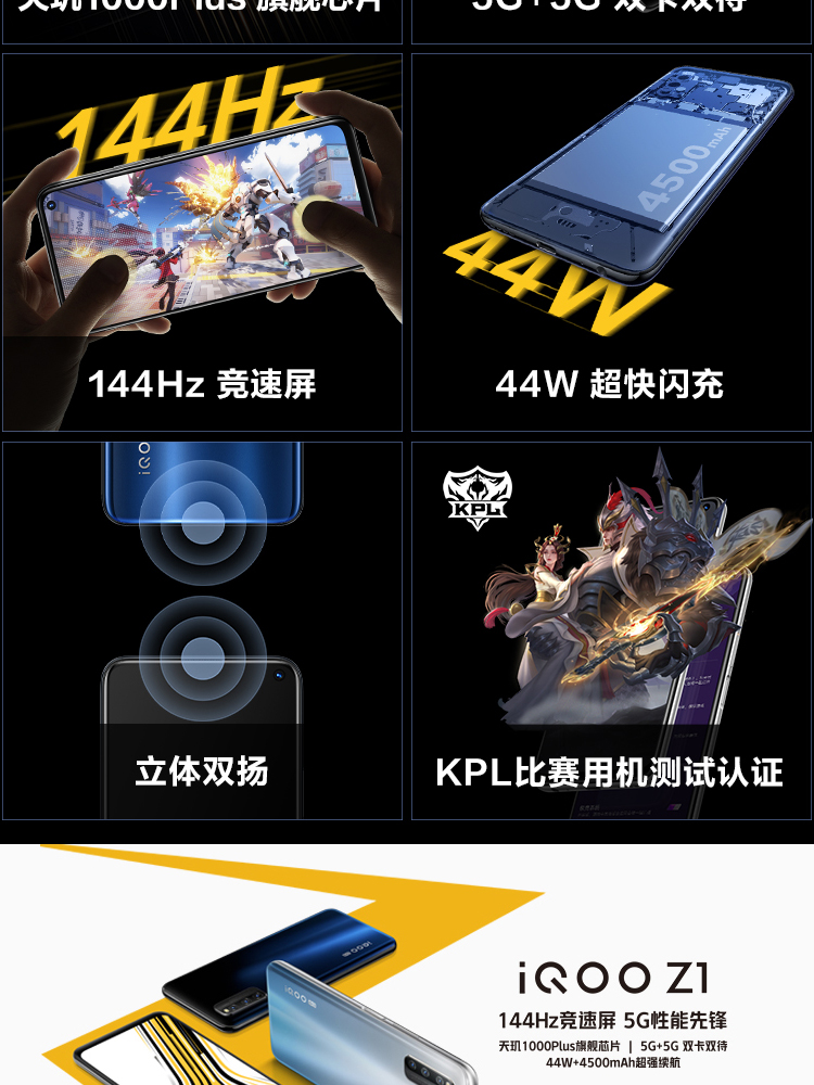 商品名称:vivo iQOO Z1 5G 8GB+256GB 星河银 天玑1000Plus旗舰芯片 144Hz竞速屏 44W超快闪充 双模5G全网通手机
