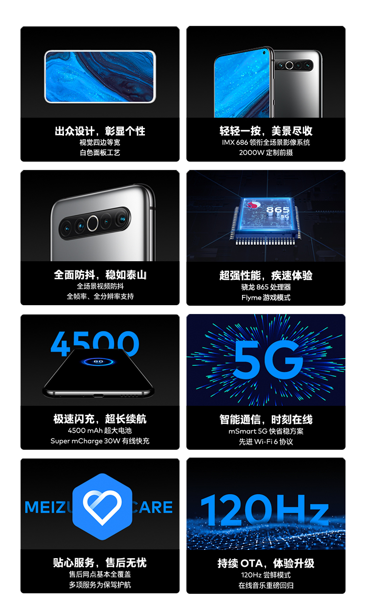 商品名称:魅族17 8GB+128GB AG 梦幻独角兽 骁龙865 旗舰5G手机 30W快充 6400W后置主摄 90Hz屏幕 支持NFC 游戏手机